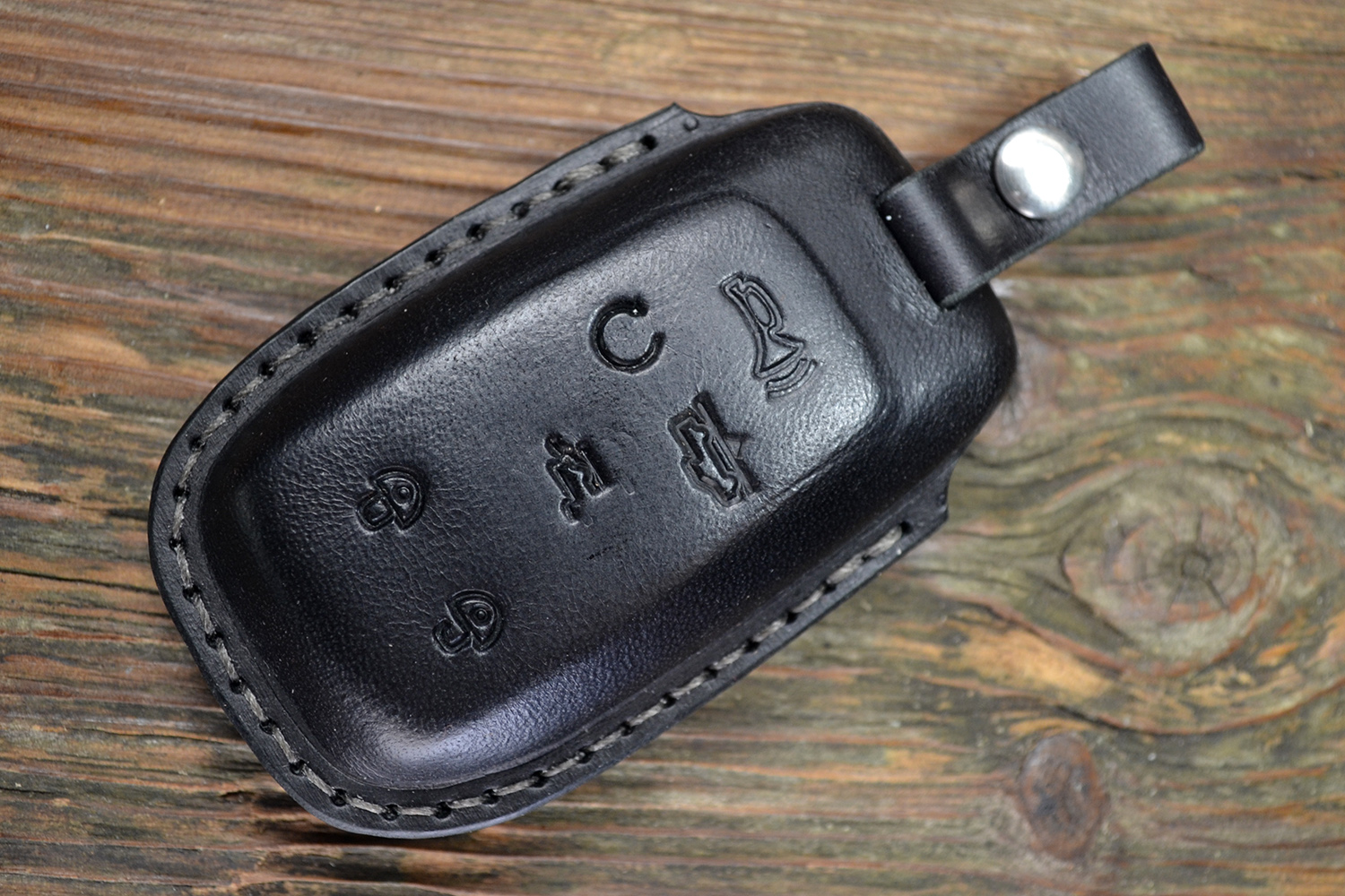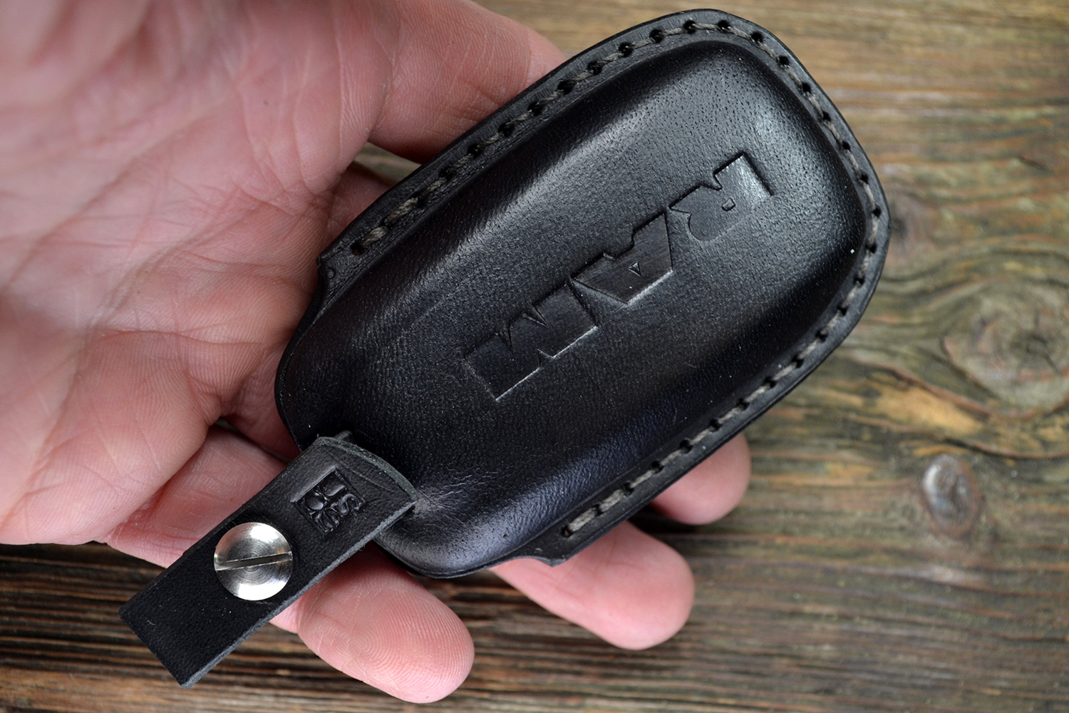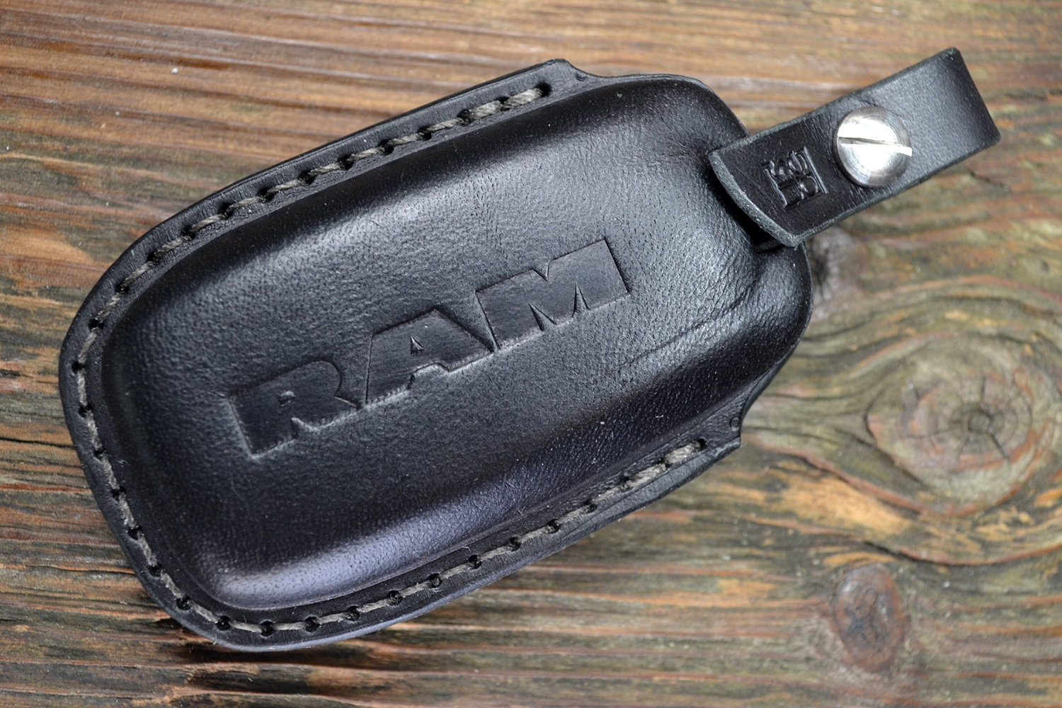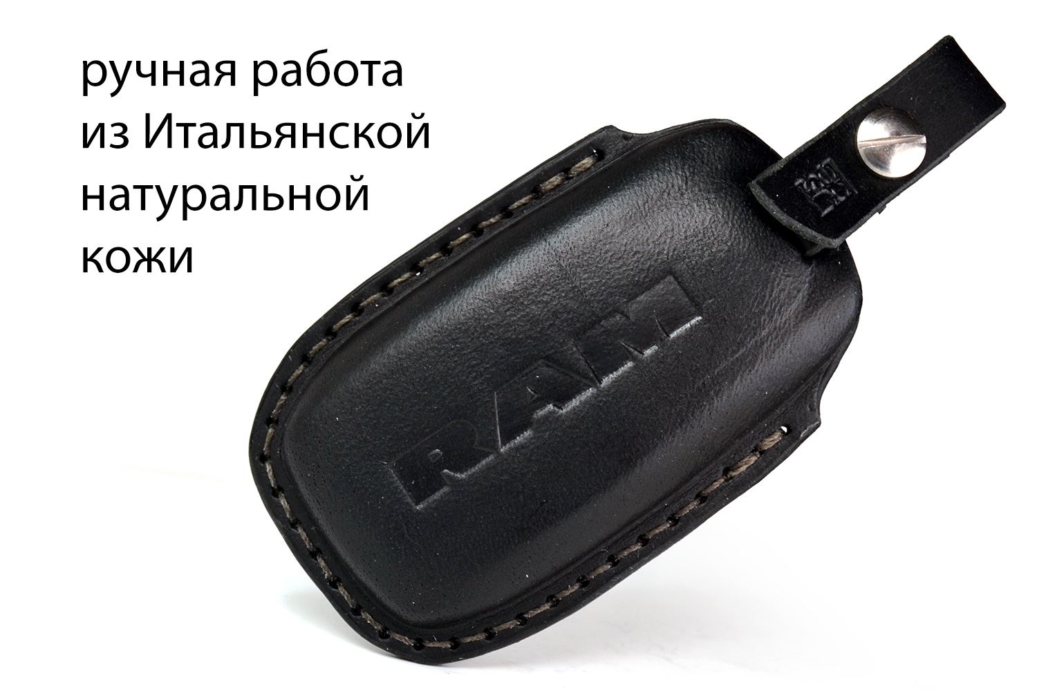 Каждый чехол прошивается вручную прочным вощёным шнуром и сконструирован в России с точной подгонкой под форму ключа Dodge RAM. Горячее тиснение логотипа RAM на задней части подчеркивает фирменный характер аксессуара.