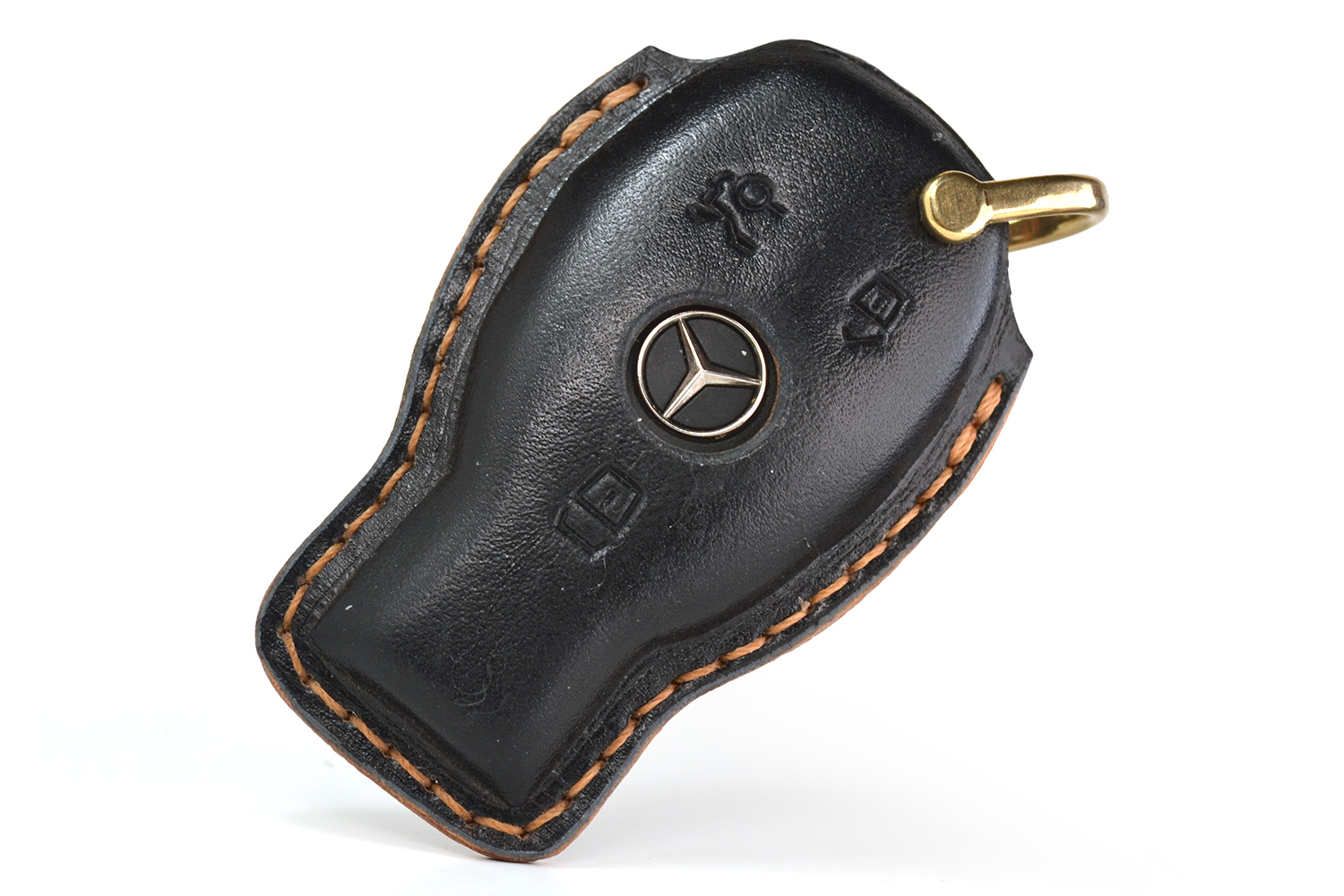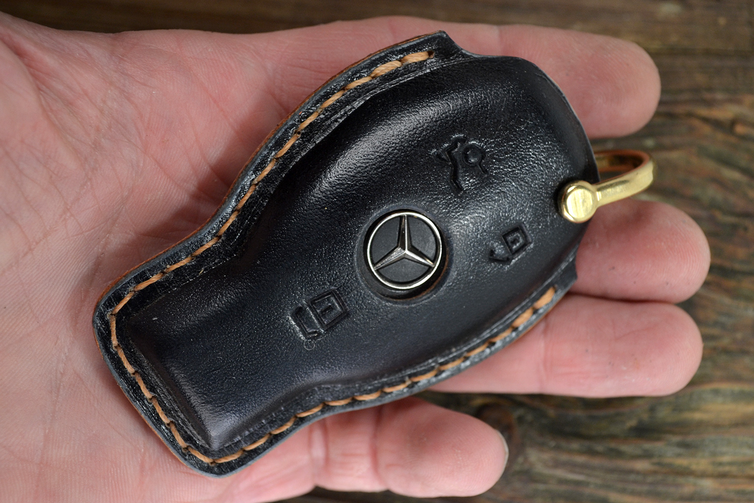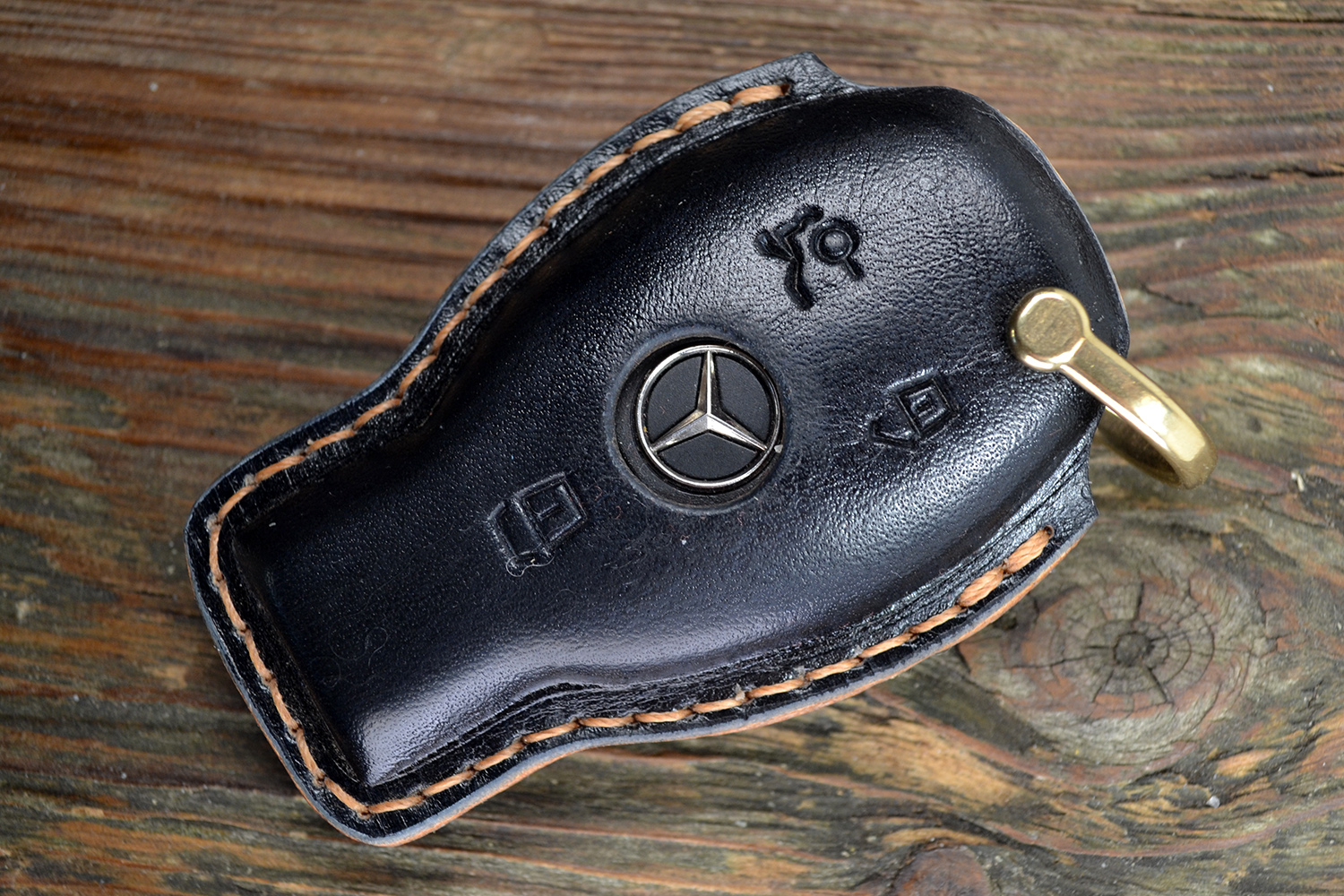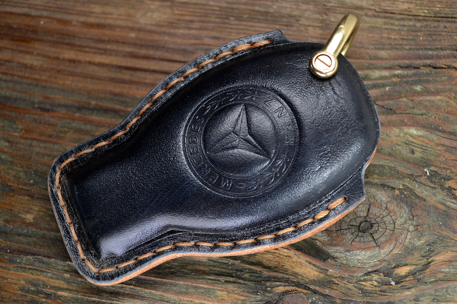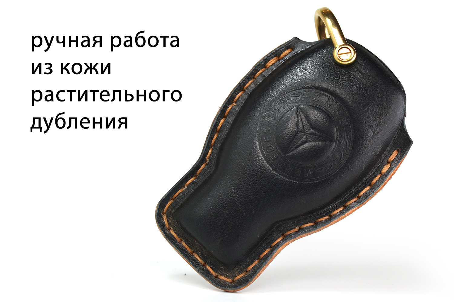 Каждый чехол прошит вручную, с вниманием к деталям и точной посадкой под ключ Mercedes. Со временем кожа красиво темнеет, приобретая уникальную патину — такой чехол стареет достойно.