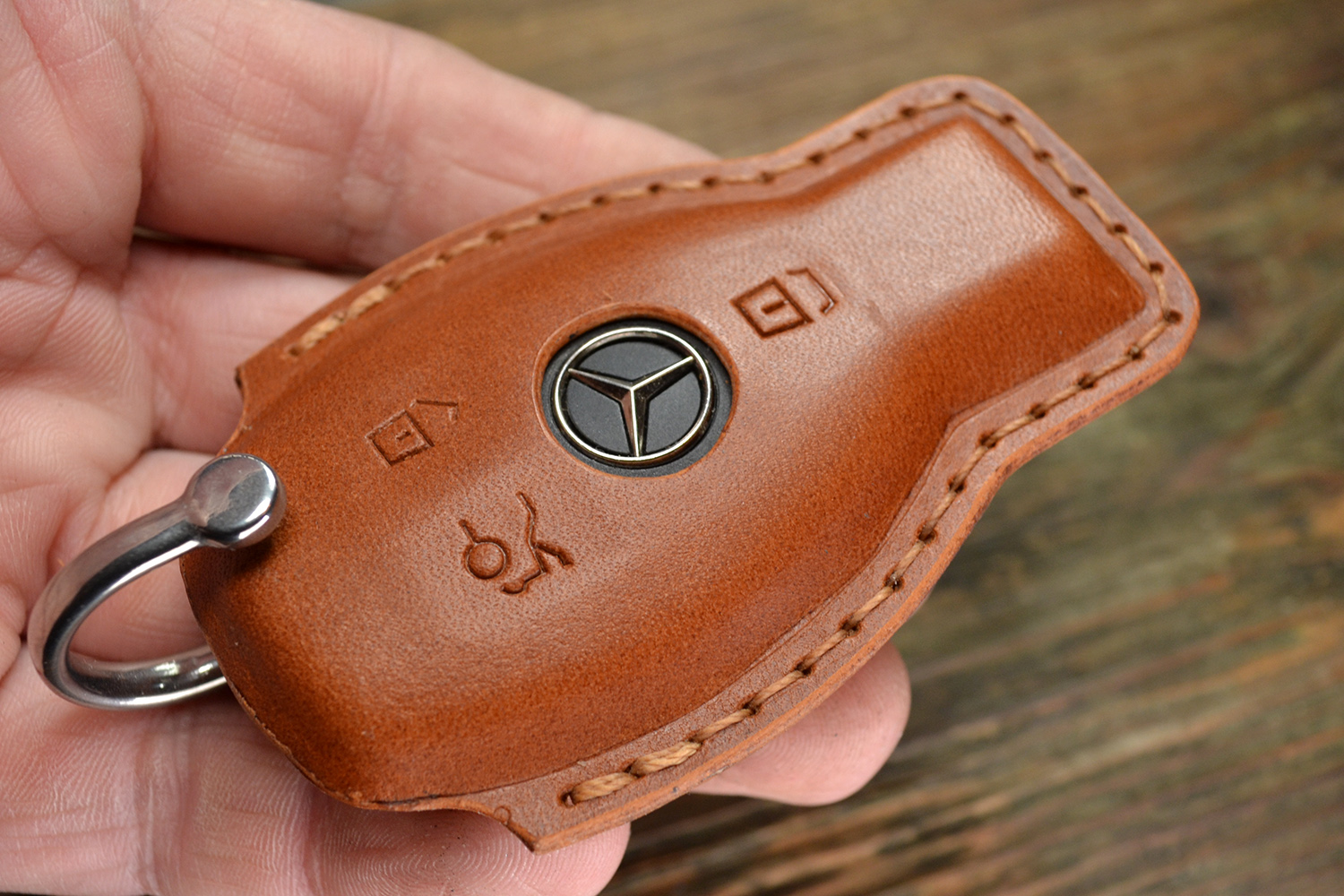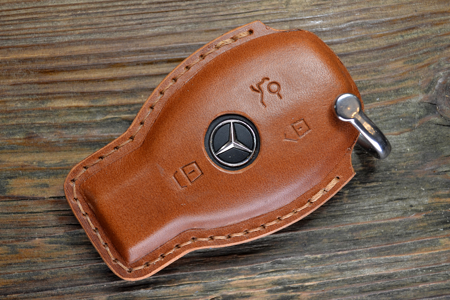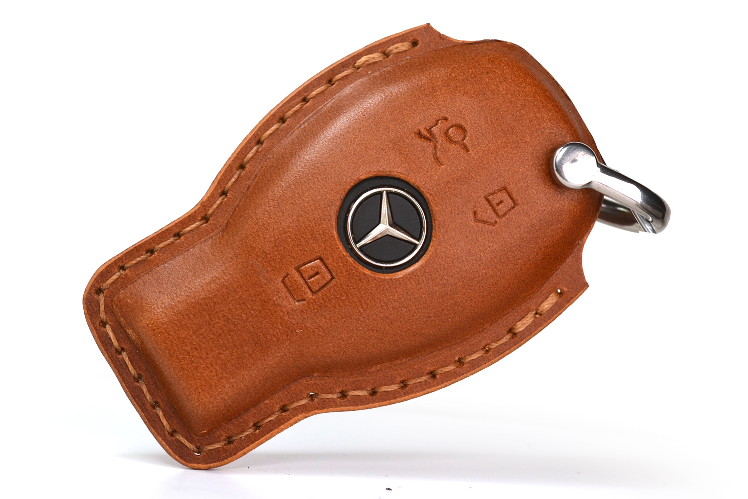 Чехол для 3-х кнопочного автомобильного ключа Mercedes (рыбка), специально сшит для этого ключа из натуральной кожи