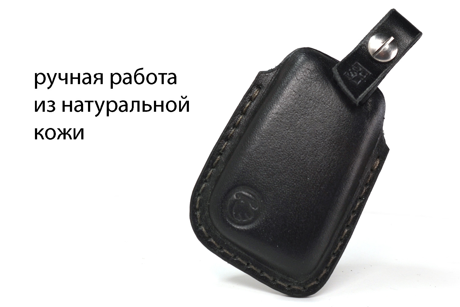 На передней стороне горячее тиснение кнопок управления, позволяет пользоваться ключом прямо в чехле. В комплект входит кожаный ремешок для удобной фиксации — его можно закрепить на поясе или сумке, при этом сохраняется возможность обычного крепления ключа на кольце или шакле.