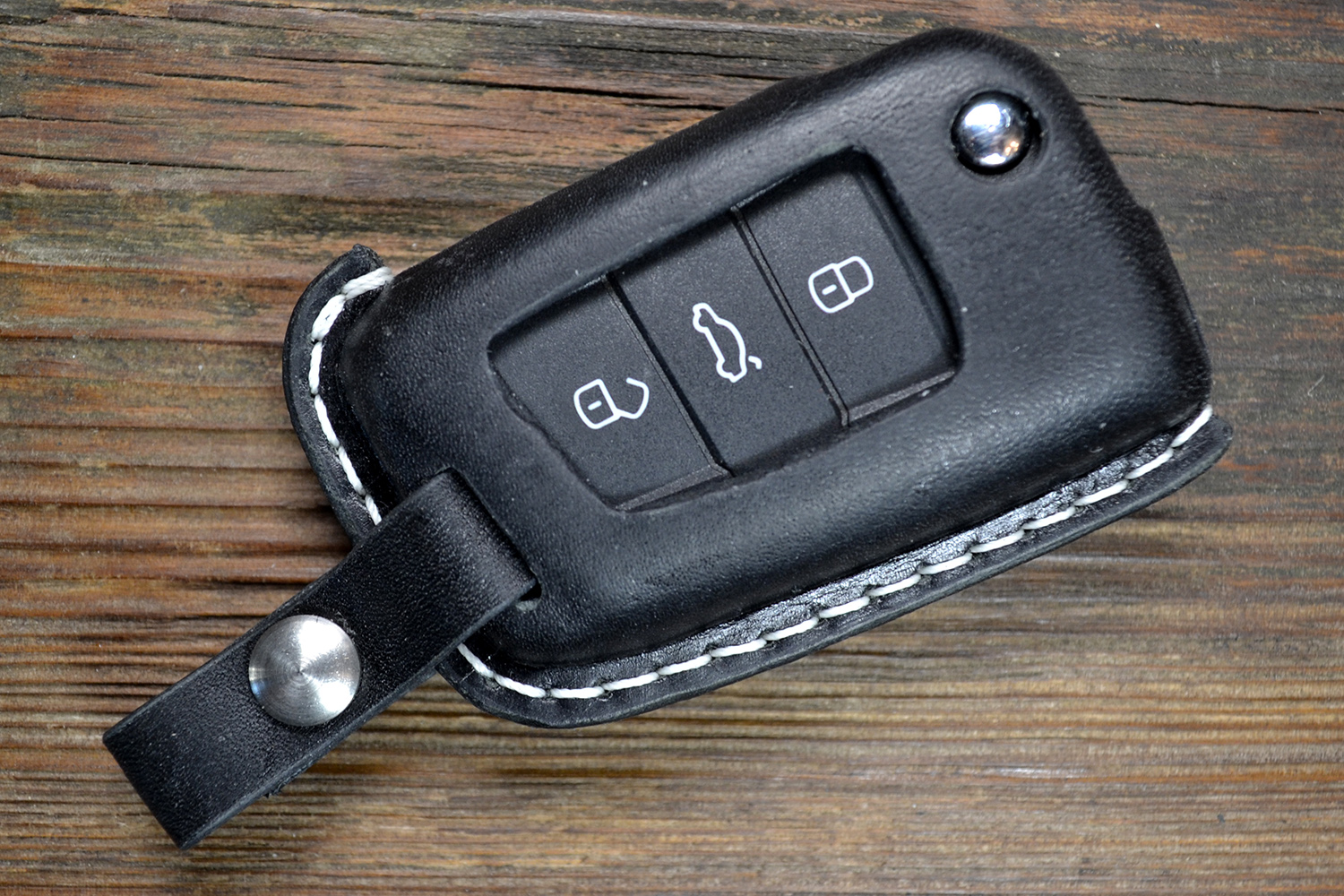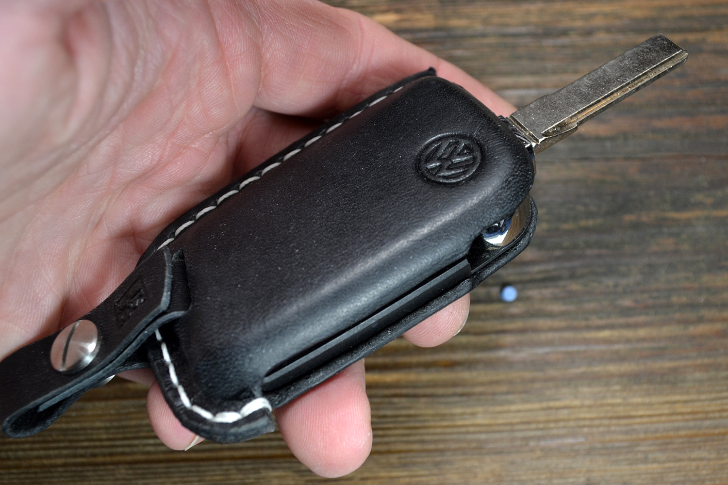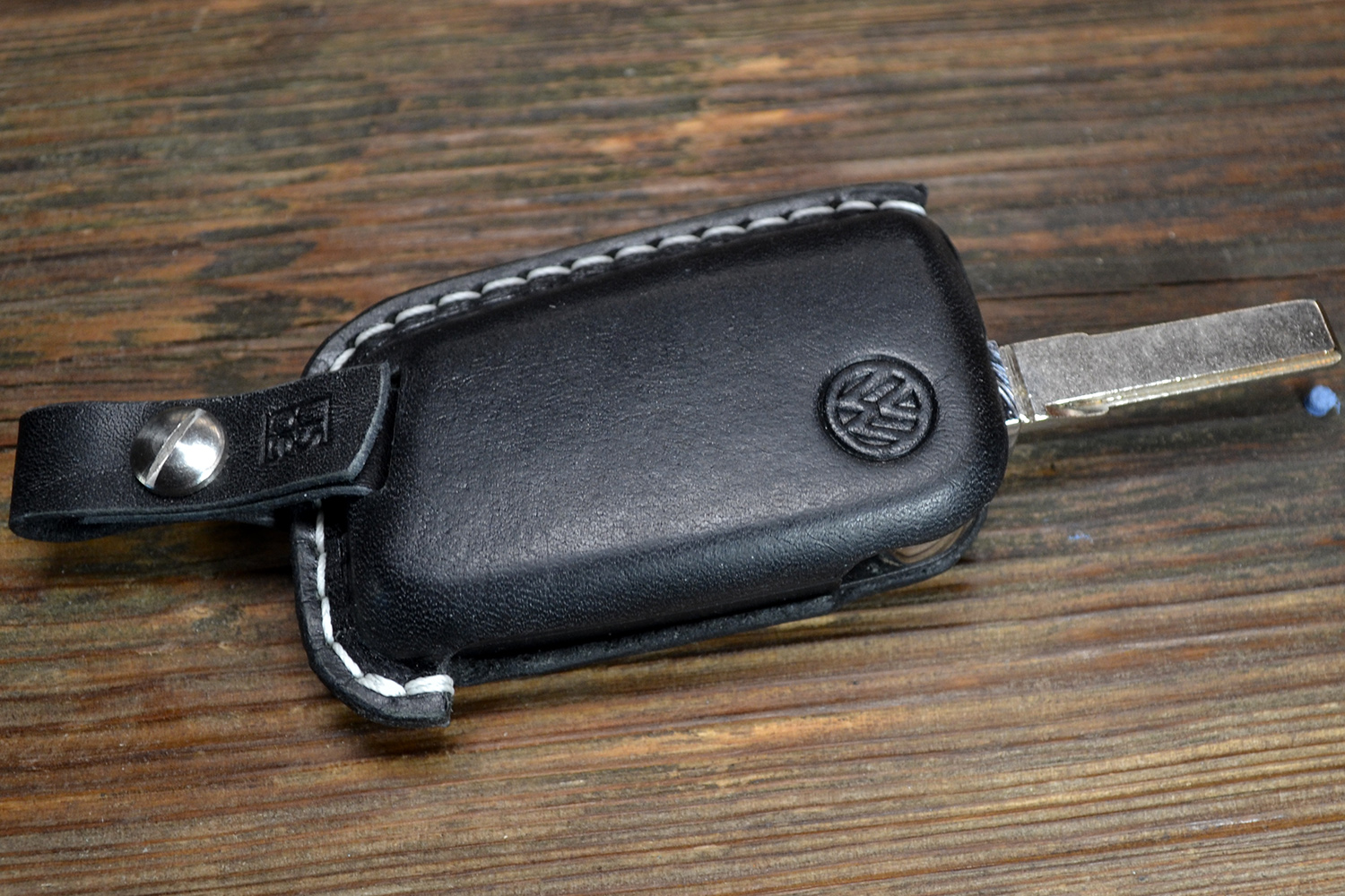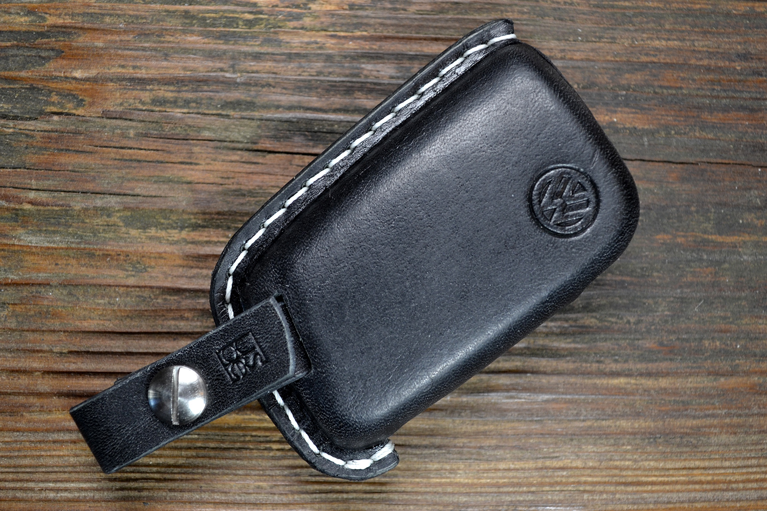 Точные вырезы под кнопки обеспечивают удобное управление функциями ключа, а горячее тиснение логотипа Volkswagen подчёркивает фирменный стиль и премиальность аксессуара. Ручная прошивка прочным вощеным шнуром гарантирует долговечность и аккуратный внешний вид.