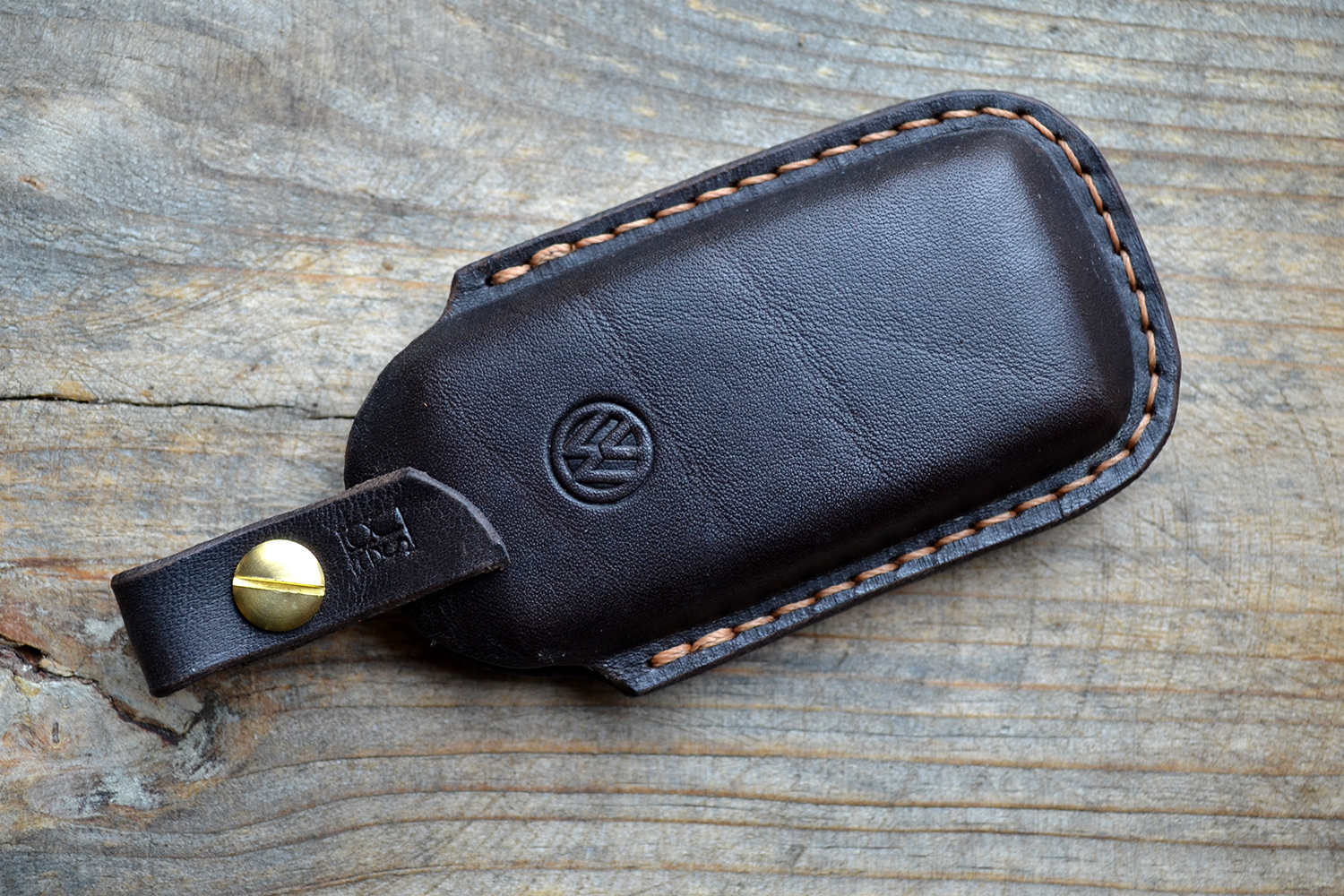 Чехол для 3-х кнопочного автомобильного ключа Volkswagen Touareg, специально сшит для этого ключа из натуральной кожи