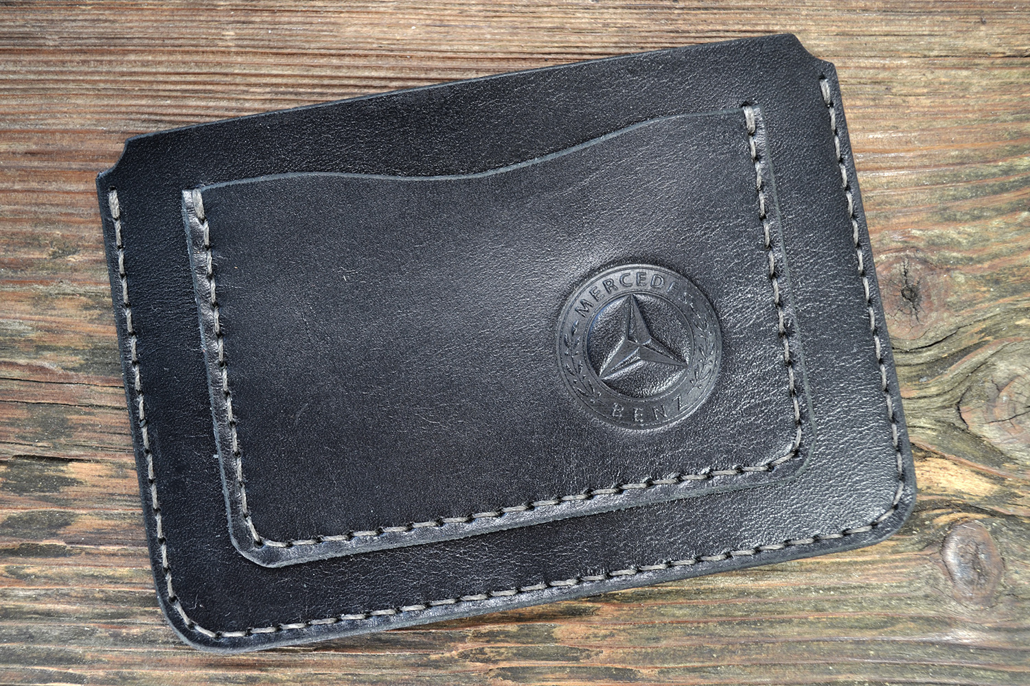 Чёрный чехол для автодокументов Mercedes из натуральной кожи